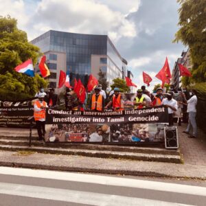 தமிழின அழிப்பிற்கு நீதி கேட்டு ஐரோப்பிய ஒன்றியத்தின் ஆணையகத்தின் முன்றலில் மனிதநேய ஈருருளிப்பயணமும் கனயீர்ப்பு ஒன்றுகூடலும் பெல்சியத்தின் அன்வேர்ப்பன் மாநகரத்தில் அமைக்கப்பட்ட மாவீரர் நினைவுக்கல்லறையில் இருந்து அகவணக்கத்தோடு பெரும் எழுச்சியாக மனித நேய ஈருருளிப்பயணம் பெல்சியத்தின் தலை நகராகிய புருசல் மாநகரத்தில் அமைந்துள்ள ஐரோப்பிய ஒன்றியத்தின் ஆணையகத்தின் முன்றலினை நோக்கி நகர்ந்தது. ஐரோப்பிய ஒன்றியத்தின் ஆணையகத்தின் முன்றலை வந்தடைந்த மனித நேய ஈருருளிப் பயண மனிதநேய செயல்படடாளர்களை மலர் செண்டு கொடுத்து வரவேற்றலுடன் கருப்பு யூலை தமிழினப் படுகொலை நாள் நினைவு வணக்க நிகழ்வு பொதுச் சுடர் ஏற்றலுடன் மலர் வணக்கம் செலுத்தப்பட்டு அகவணக்கத்துடன் நேற்று மதியம் (26/07/2021) 13.00 மணிக்கு ஆரம்பமான கவனயீர்ப்பு போராட்டம் தமிழினப் படுகொலைக்கு நீதி வேண்டும், எமது தலைவர் பிரபாகரன், தமிழீழ விடுதலைப் புலிகள் சுதந்திர விடுதலைப் போராளிகள்,தமிழ் மக்களுக்கு தமிழீழமே ஒற்றைத் தீர்வு என்றும் , சிறீலங்காவின் சனாதிபதி தமிழின படுகொலையாளி என்றும் சர்வதேசமே ஈழத்தமிழ் மக்களுக்கான தீர்வினை பெற்றுத்தர வேண்டும், தமிழின படுகொலைக்கு அனைத்துலக சுயாதீன விசாரணை தேவை என்றும் குரல் எழுப்பி பெரும் எழுச்சியோடு நடைபெற்றது. தமிழின அழிப்பின் ஆதாரங்கள் தாங்கிய பதாகைகளோடும் தமிழின அழிப்பிற்கு அனைத்துலக சுயாதீன விசாரணை வேண்டும் எனவும் தமிழீழமே எமக்கான ஒரே தீர்வு எனவும் கோசங்கள் எழுப்பி வாழிட மொழியில் பல்லினவாழ்மக்களுக்கு விளக்க உரையும் நடைபெற்றது. தம்மை அர்பணித்து எம்மிடம் கையளிக்கப்பட்ட விடுதலைப்போராட்டத்தை புலம்பெயர் நாடுகளில் உள்ள ஜனநாயகத் தளத்தைப் பயன்படுத்தி முன்நகர்த்துவதென்ற எந்த வினவுதலுக்குமப்பால் தமிழினத்தின் விடுதலையொன்றே தம்முயிர்மூச்செனக்கொண்டு தம்மை அர்பணித்தோருக்காற்றும் கைமாறாகும். அழிக்கப்பட்டுவரும் எமது தேசிய இனத்தை காப்பதற்காக தமிழர்களுடைய தார்மீக வரலாற்று உரிமையை, தமிழ்த் தேசியத்தை, தமிழரின் இறைமையை தமிழர்களாகிய நாமே போராடி மீட்கவேண்டியிருப்பது என்பது ஒவ்வொரு தமிழனும் தனது இனத்துக்காக செய்யவேண்டிய ஒப்பற்ற கடமையாகும்! எமது சுதந்திரத்துக்காக மண்டியிடாது தொடர்ந்து ஓயாது போராடிவரும் தமிழர்களாகிய நாம், சர்வதேச நாடுகள் ஒன்றுகூடுகின்ற இந்த காலப்பகுதியில் இனவழிப்புக்கு உட்பட்டுவரும் எமது மக்களுக்கான நீதியை வலியுறுத்தியும், எமது வரலாற்றுத் தார்மீக உரிமையை வலியுறுத்தியும் பல்வேறு எழுச்சி மிகு மக்கள் போராட்டங்களை ஓயாது தொடர்ந்து நிகழ்த்தவேண்டியிருப்பது இன்றைய வரலாற்றுத் தேவை