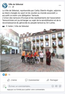13ம் நாளாக (14/09/2021) தொடரும் நீதிக்கான மனித நேய ஈருருளிப்பயணத்திற்கு பிரெஞ்சு தொலைக்காட்சி முக்கியத்துவம். (960Km) தமிழீழ விடுதலை காணும் வரை ஓயாத விடுத்லைப்போராட்டத்தில் எம் தமிழீழ மக்களின் எழுச்சியும் பங்களிப்பும் அளப்பரியன. 2009ம் ஆண்டு சிங்களப் பேரினவாத அரசால் கொடூரத்தனமாக நிகழ்த்தப்பட்ட தமிழின அழிப்பிற்கு அனைத்துலக சுயாதீன விசாரணை வேண்டியும் தமிழீழ சுதந்திர தேசமே எமக்கான தீர்வு என பறைசாற்றிக்கொண்டு ஐரோப்பிய பாராளுமன்றம், ஐரோப்பிய ஆலோசனை அவையில் முக்கிய கலந்துரையாடல் ஊடாக தமிழின அழிப்பிற்கு அனைத்துலக சுயாதீன விசாரணையினை பிரான்சு வலியுறுத்த வேண்டும் என மனித நேய செயற்பாட்டாளர்களால் எடுத்துரைக்கப் பட்டது. ஐக்கிய நாடுகள் அவையிலும் பாதுகாப்பு சபையிலும் சம நேரத்தில் அங்கம் வகிக்கும் நாடுகளில் பிரான்சு நாடும் மிக முக்கியமன ஒன்றாக இருக்கின்றது எனவே பல்லின வாழ் மக்களின் சக்தியோடும் ஊடகங்களின் முக்கியத்துவத்தோடும் பிரான்சு நாட்டு மக்கள் தமிழர்களின் நியாயமான கோரிக்கைக்கு பிரான்சு நாட்டினை செவிசாய்க்க வைக்க வேண்டியது காலத்தின் தேவையாகும்.எனவே நாம் வாழும் நாடுகளை எமது அறவழிப்போராட்ட சக்தியாலே தமிழர்களின் நியாயமான கோரிக்கையினை செவிமடுக்க வைக்கமுடியும். தொடர்ச்சியாக 23 தடவையாக 2009ம் ஆண்டில் இருந்து நடைபெறும் மனித நேய ஈருருளிப்பயணத்தின் மூலம் வலுவான அரசியற் செய்தியினை பறைசாற்றியபடியே இன்று 14/09/2021 Strasbourg, Illkirch, Erstein , Benfeld, Sélestat , Ribeauvillé , Colmar மாநகரசபைகளில் முதல்வர்கள், மேற்சபை உறுப்பினர்கள், பாராளுமன்ற உறுப்பினர்கள் உடனான சந்திப்புக்கள் நடைபெற்றது. மனித நேய செயற்பாட்டாளர்களை பானங்கள் கொடுத்து இன்முகத்தோடு மாநகரசபை வரவேற்றது மட்டுமல்லாமல் பன்னெடுந்தூரம் சுமந்து வந்த நியாயமான கோரிக்கைகளினை தாம் வெளிநாட்டு வெளிவிவகார அமைச்சிடமும் பிரான்சு அரச அதிபரிடமும் சமர்ப்பிப்பதாகவும் உறுதிமொழி தரப்பட்டத்து. மாநகரசபை முதல்வர்கள் தம் முகநூல் பக்கங்களிலும் தமிழின அழிப்பிற்கு நீதி கேட்கும் மனித நேய ஈருருளிப்பயணம் சார்ந்த பதிவுகளை இட்டு தம் ஆதரவுகளை தெரிவித்தனர். மேலும் பிரெஞ்சு தொலைக்காட்சியும் முக்கியத்துவம் கொடுத்துள்ளது குறிப்பிடத்தக்கது. விடுதலைக்கான பயணம் தொடரும். “இலட்சியத்தில் ஒன்றுபட்டு உறுதிபூண்ட மக்களே வரலாற்றைப் படைப்பார்கள்” – தமிழீழத் தேசியத் தலைவர் மேதகு வே.பிரபாகரன். தமிழரின் தாகம் தமிழீழத் தாயகம்.