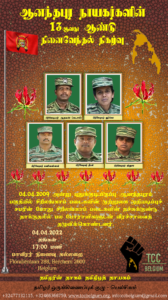 ஆனந்தபுர நாயகர்களின் 13 ஆவது ஆண்டு நினைவேந்தல் நிகழ்வு வரும் 04.04.2022 திங்கள் பிற்பகல் 17.00 மணிக்கு இடம்பெறவுள்ளது.